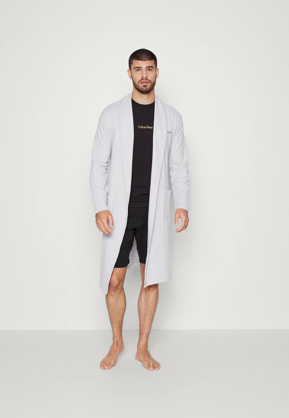 - Détails: Coupe kimono, poches, col châle, ceinture, long